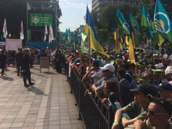 Утром 7 июня представители Аграрной партии собрались под украинским парламентом с требованием продлить мораторий на продажу сельхозземель.