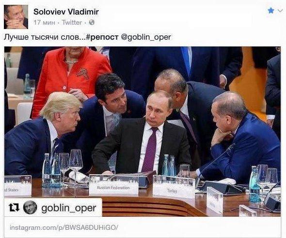 В частности, фото опубликовал на своей странице в соцсети кремлевский пропагандист Владимир Соловьев, правда, позже удалил его.