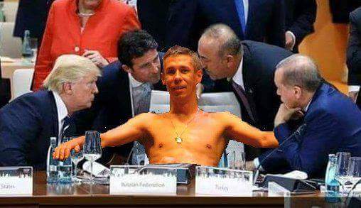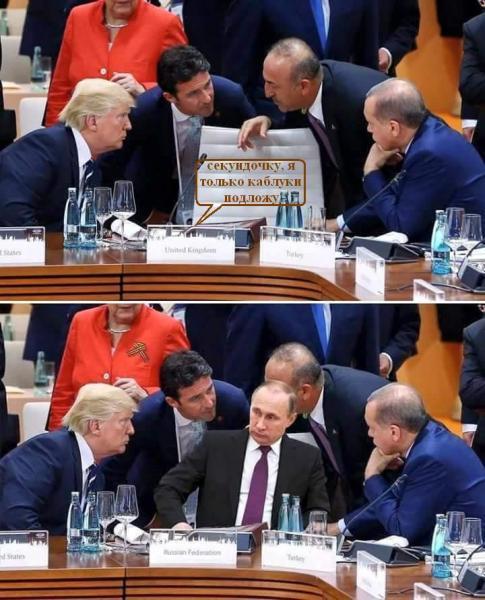 На волне эйфории от исторической встречи на саммите "Большой двадцатки" Дональда Трампа и Владимира Путина поклонники последнего опубликовали в соцсетях "отфотошопленный" снимок, где российский президент якобы сидит в окружении мировых лидеров, которые что-то обсуждают.