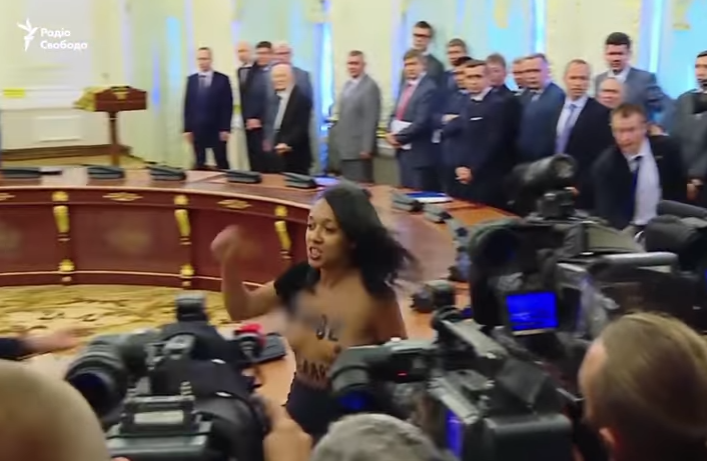 Инцидент произошел во время подписания белорусско-украинских международных документов министрами культуры двух стран в здании Администрации Президента Украины. Находящаяся среди журналистов девушка внезапно расстегнула блузку и стала выкрикивать: "Жыве Беларусь!". Этот лозунг также был написан у нее на груди.