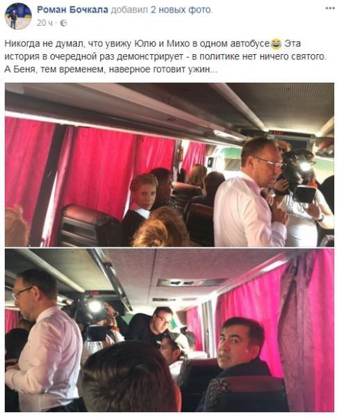 Журналист Роман Бочкала написал в Фейсбуке, что никогда не думал, что встретит «Юлю и Михо» с одном автобусе.