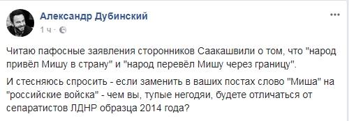 Журналист Александр Дубинский прокомментировал заявления сторонников скандального политика, которые заявили, что "народ привёл Мишу в страну", и вспомнил о сепаратистах «образца 2014 года».