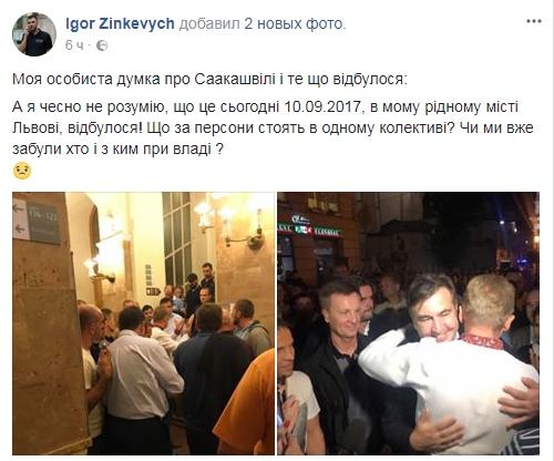 Львовский депутат Игорь Зинкевич написал в ФБ, что не понимает, что произошло в его родном городе Львове.