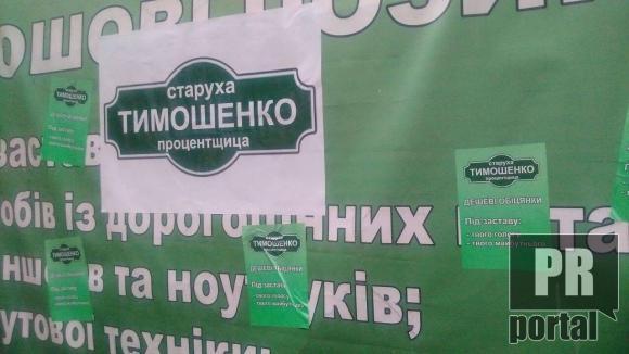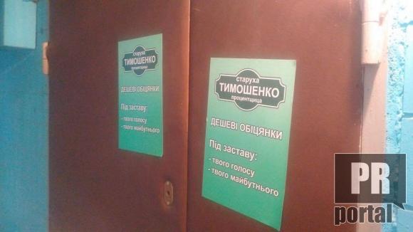 Пока соцсети обсуждают клип Щура, в Киеве и Боярке активисты обклеивают листовками ломбарды "Дешева готівка", которые по данным расследования "Наші гроші з Денисом Бігусом" принадлежат семье Юлии Тимошенко. Так на одной из них написано "Старуха процентщица Тимошенко".