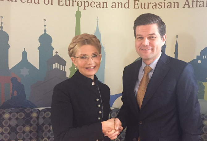 На встрече с с помощником государственного секретаря США по делам Европы и Евразии Вессом Митчеллом Тимошенко обсудила пути достижения мира на Донбассе и ситуацию в оккупированном Крыму. Также речь шла о коррупции в Украине. Стороны затронули вопросы перспектив создания независимого Антикоррупционного суда.