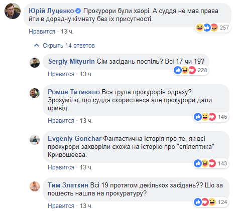 В комментариях генпрокурор добавил, что прокуроры были больны, а судья не имел права идти в совещательную комнату без их присутствия. Однако пользователи сети нашли странным то, что все 19 прокуроров по делу Кернеса одновременно заболели.