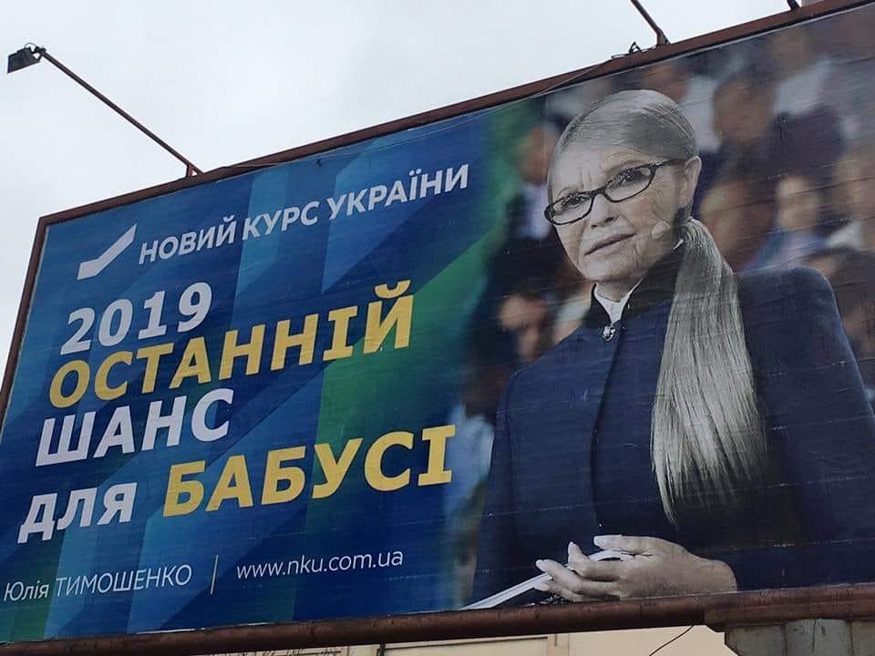 Речт идет о билбордах, на которых изображена лидер партии с постаревшим лицом и надпись: «2019 Последний шанс для бабушки».
