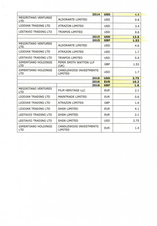 Все средства выводились с похожим назначением платежей «оплата» или «предоплата за услуги согласно контрактам». Также согласно одному из назначения 1,3 млн евро были направлены на покупку недвижимости.