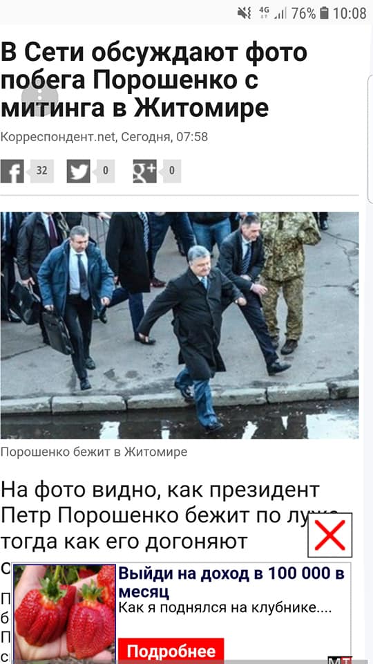Сегодня российские и некоторые украинские СМИ написали о том, что президент Петр Порошенко скобы сбежал с митинга с Житомире.