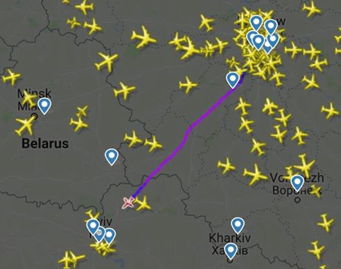 Это подтверждают данные интернет-сервиса Flightradar, передает Час Пик.