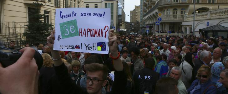 Во вторник, 9 апреля, в Киеве на на улице Новоселицкой под офисом кандидата в президенты Украины Владимира Зеленского начиная с 16:00 проходил массовый протест.