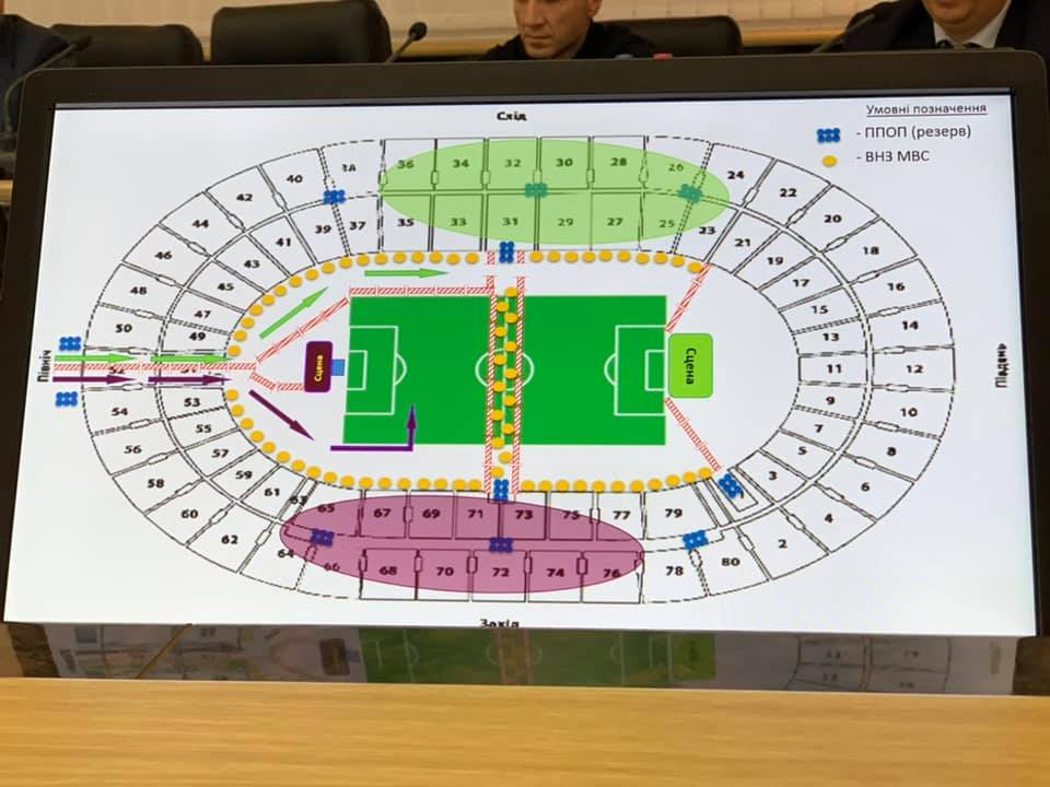 Аласания обнародовал фото плана стадиона с распределением сцен и фан-зон, который пока не утвержден. Как видно, на "Олимпийском" будут установлены две сцены - своя для каждого кандадата, при этом зрителей - стронников разных кандидатов - разместят в отдельных секторах.