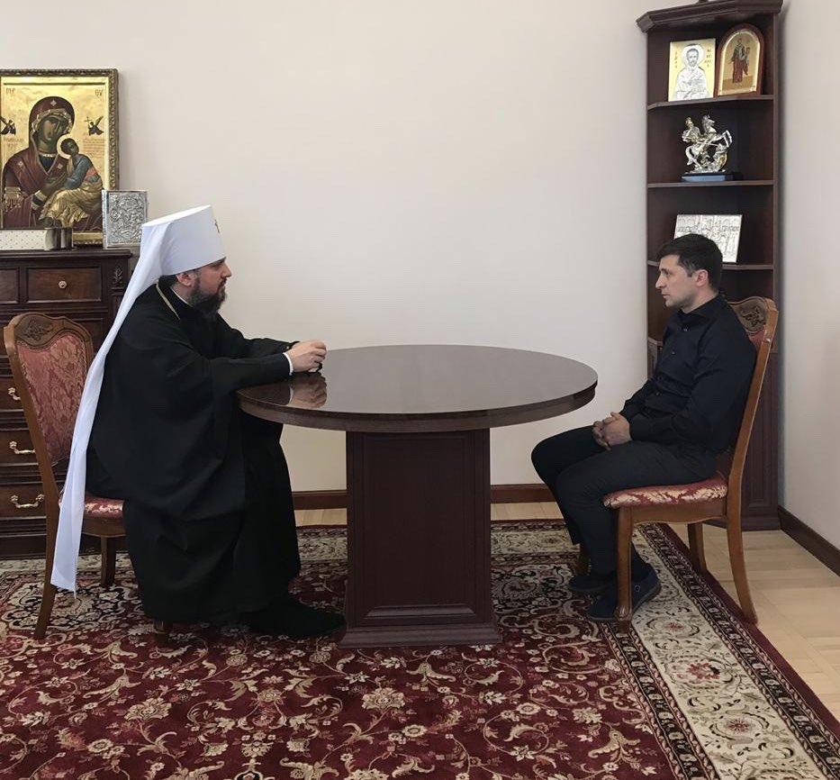 Зустрівся з обраним Президентом Володимиром Зеленським. Молитимуся, аби Бог дав новому Главі держави сил витримати тягар відповідальності за єдність України. Маємо разом берегти і примножувати те, що українці вже здобули. pic.twitter.com/FGGXubxsZK
