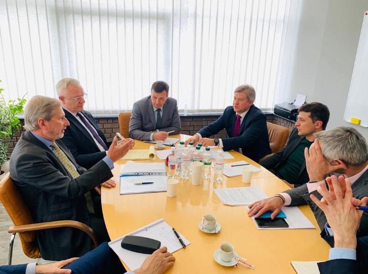 Победитель президентских выборов Владимир Зеленский провел встречу с к еврокомиссаром по вопросам расширения и политики добрососедства Йоханессом Ханом, который прибыл в столицу сегодня.