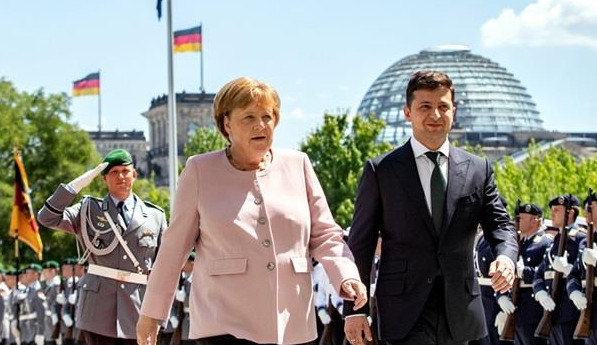 В Берлине во время официальной встречи с президентом Украины Владимиром Зеленским канцлеру Германии Ангеле Меркель стало плохо. Глава украинского государства стоял ровно, в то время, как Меркель старалась унять сильную дрожь.