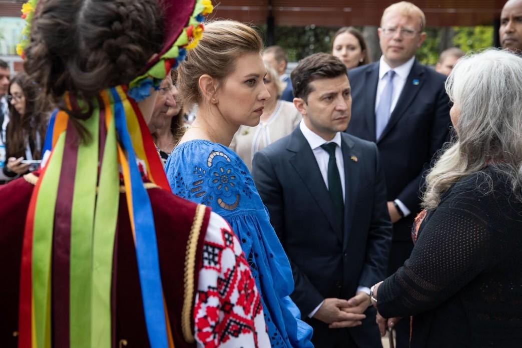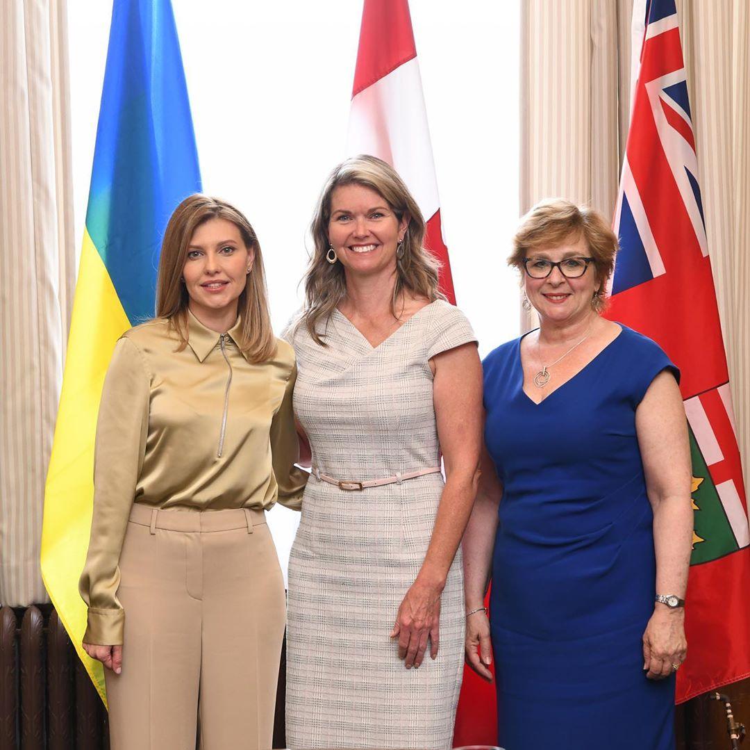 Позже Зеленская продемонстрировала другие образы: она надела синее платье в этно-стиле на церемонию чествования памяти жертв Голодомора, а на встрече с Министром по делам детей и женщин Правительства провинции Онтарио Джил Данлоп и парламентским секретарем Министра здравоохранения Робин Мартин Елена была в бежевом брючном костюме.