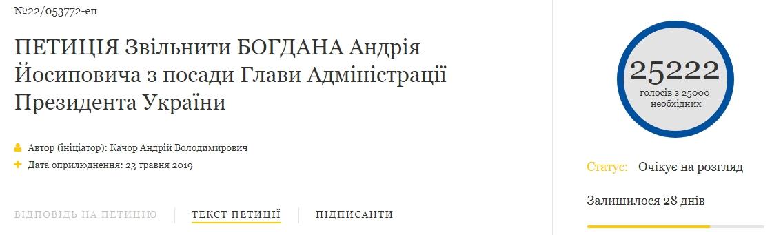 Стоит отметить, автором обоих петиций за отставку 46-летнего руководителя ОП Богдана является Качор Андрей Владимирович.
