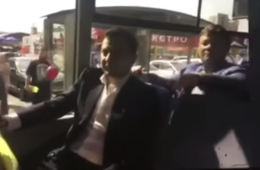 Во время поездки Богдан не хотел пускать в салон троллейбуса людей. Инцидент попал в прямую трансляцию на странице Офиса президента в Фейсбуке, после чего эфир резко прервался и был удален. Видео успело записать издание "Страна", передает Час Пик.