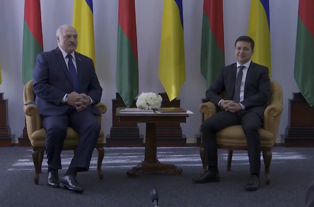 Зеленский начал свою речь на русском языке, однако затем перешел на украинский, отметив, что они с Лукашенко прекрасно понимают друг друга, поскольку украинский и белорусский языки очень близкие.
