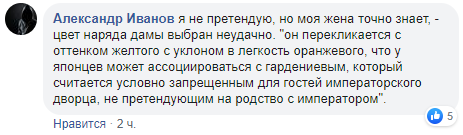 "Представители всех иностранных представительств и миссий никогда не надевают вещи желтого цвета на официальные приемы в Японии, или даже в посольство Японии. Потому что это или неуважение к императору, или человек демонстрирует семейные связи с императором", - пишут блогеры.