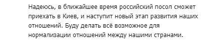 "Прекращение войны в Украине и установление нормальных дипломатических отношений между нашими странами — первоочередная задача.