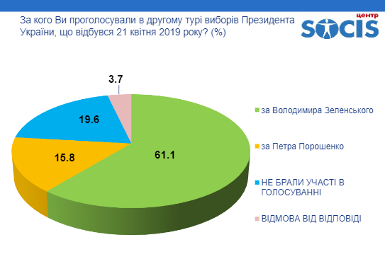 Интересны результаты опроса по поводу голосования во втором туре президентских выборов. Так, 61,1% опрошенных заявили, что 21 апреля 2019 года голосовали за Зеленского, 15,8% - за Порошенко. Но если бы второй тур проходил сейчас, за Зеленского проголосовали бы только 47,9% опрошенных, а за Порошенко - столько же, 15,8%.