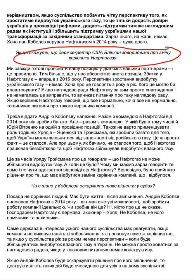 В частности в "черновиках" ответов на вопросы, которые могли быть подняты при встрече с госсекретарем США, есть также попытки объяснить кадровые перестановки в НАК "Нафтогаз".