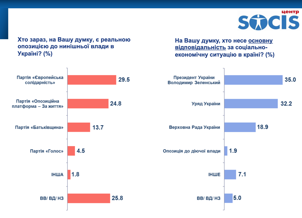 В СМИ отмечают, что разрыв между партиями Зеленского и Порошенко сокращается. Сейчас он составляет менее 7%. По данным опроса, именно "Европейская солидарность" составляет оппозицию по отношению к "Слуге народа". Так думают 29,5% опрошенных. 24,8% считают, что реальная оппозиция - "Оппозиционная платформа - За жизнь".