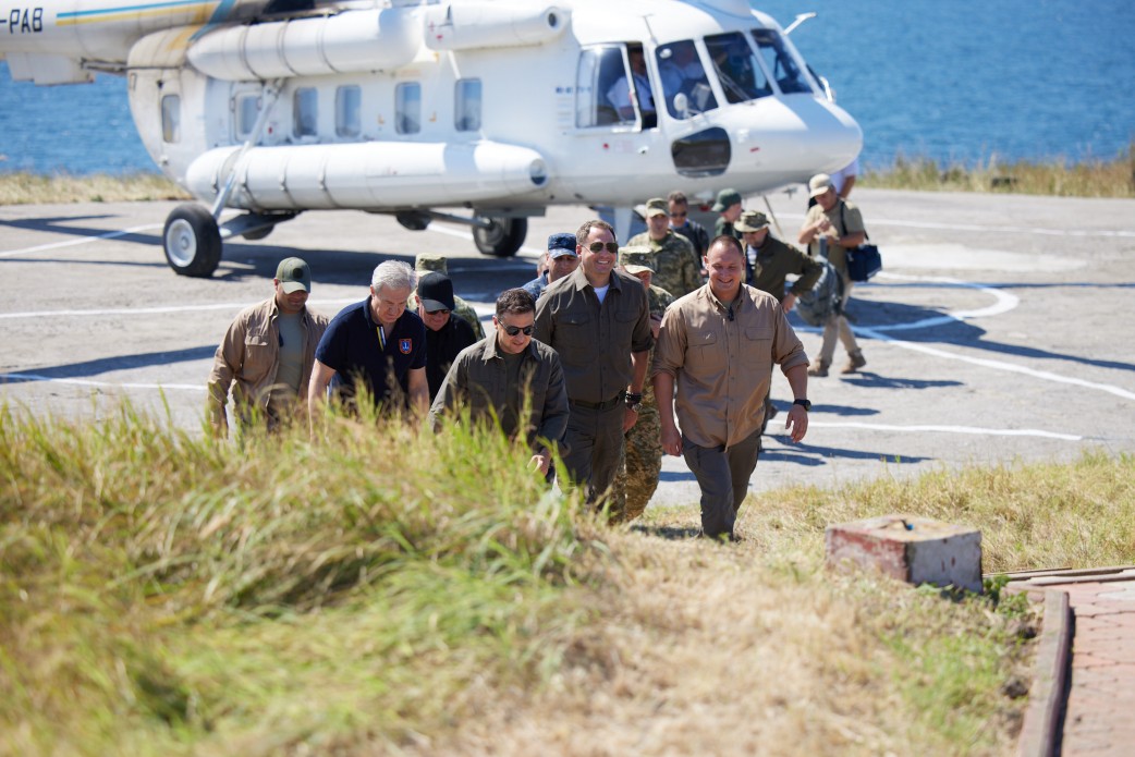 Зеленский также посетил остров Змеиный в Черном море, где наблюдал за составляющей командно-штабных учений с участием командования объединенных сил Вооруженных Сил Украины и всех видов и родов войск (сил).