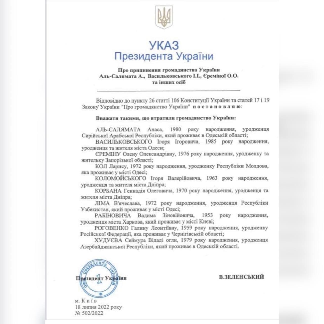 В сети появился указ президента Украины Владимира Зеленского о лишении гражданства Коломойского, Рабиновича и Корбана.