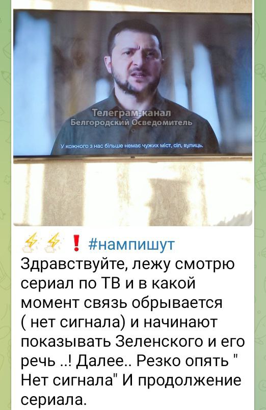 Российские каналы в оккупированном Крыму, Краснодарском крае и Белгородской области показали обращение президента Украины Владимира Зеленского.