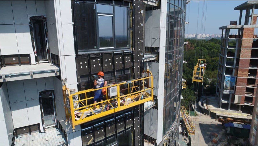 Ни одна крупная строительная площадка сегодня не обходится без специальных подъемников. С помощью люлек застройщик обеспечивает транспортировку груза и строительной бригады для выполнения облицовки, штукатурки и отделки фасада.
