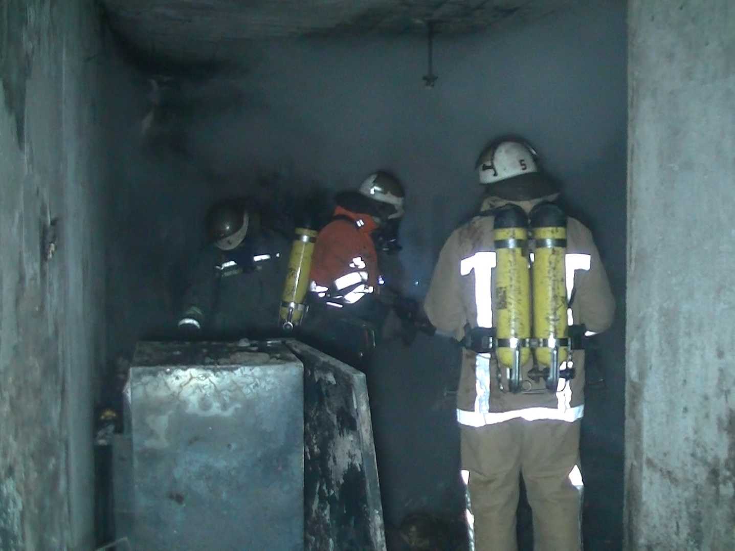 К месту происшествия немедленно прибыли 4 пожарно-спасательных подразделения ГСЧС. По прибытию к месту пожара было установлено, что в комнате на 1-м этаже горели домашние вещи и пол в коридоре на общей площади 20м.кв.