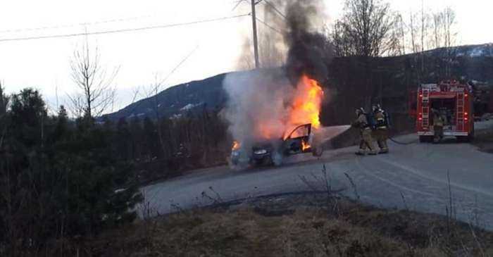 Случай произошел в Норвегии. Автомобиль марки Mercedes вспыхнул на одной из сельских дорог. Когда пожарные, которые прибыли на место инцидента, начали заливать машину водой, охваченная огнем машина отъехала от пожарных, скатившись с дороги.