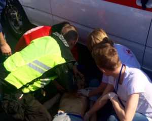 Басевич добавил: "У молодого человека остановка сердца. Реанимация только приехала ... Парня откачивают более 10 минут, сам не дышит".