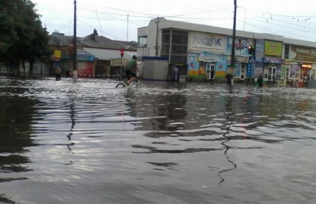 2 июля вечером на город обрушился мощный ливень. Общественный транспорт прекратил работу буквально через 15−20 минут после начала дождя. Ливневые канализации не помогли, уровень воды на улицах поднялся до 35 см. Некоторые машины не могли преодолеть такие «реки», и ломались.
