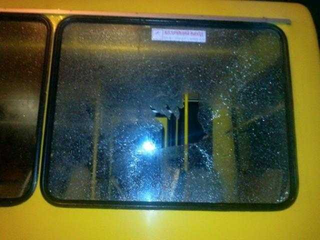 Пули из травматического пистолета пробили заднее стекло маршрутки. Пострадавших нет.