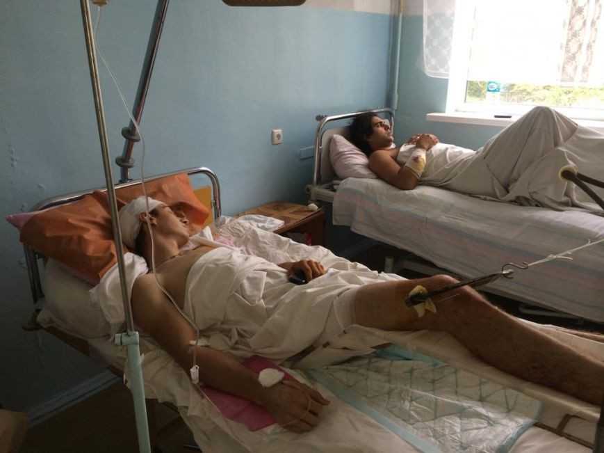 Другу Александра оторвало руку, он находится в той же больнице в реанимации. У Александра поломана нога, травмирована рука. Осколки были в голове. "Слава Богу, с ребенком все в порядке",- еле проговаривает мужчина.