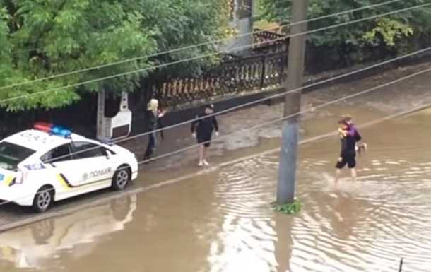 Во Львове полицейские на руках вынесли пассажиров из затопленной маршрутки