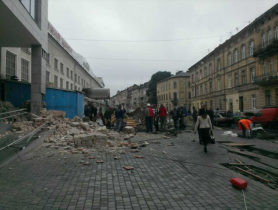 Из-за громкого открытия торгового центра во Львове обвалилась стена. Произошло это на второй день после открытия.