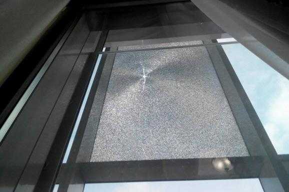 Главный военный прокорур Украины Анатолий Матиос показал журналистам следы от пуль в окне кабинета Генерального прокурора Виктора Шокина.