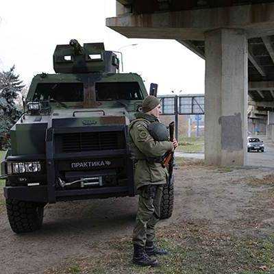 В Киеве из-за сверхвысокого уровня террористической угрозы нацгвардейцы на БТРах охраняют мосты, созданы группы быстрого реагирования для усиления общественной безопасности в городе. Они несут службу круглосуточно.
