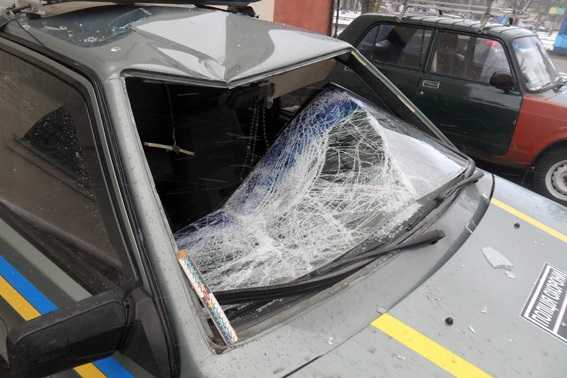 Инцидент произошел сегодня, 23 марта, около 14:30. При этом юноша упал на авто полиции охраны под зданием, разбив лобовое стекло.