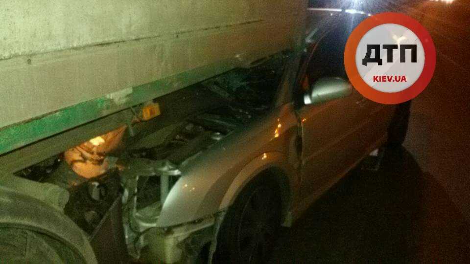 Вечером 29 марта в Киеве на ул. Ватутина произошло дорожно-транспортное происшествие с пострадавшими. Водитель автомобиля "Opel Vectra" не справился с управлением и врезался в грузовик.