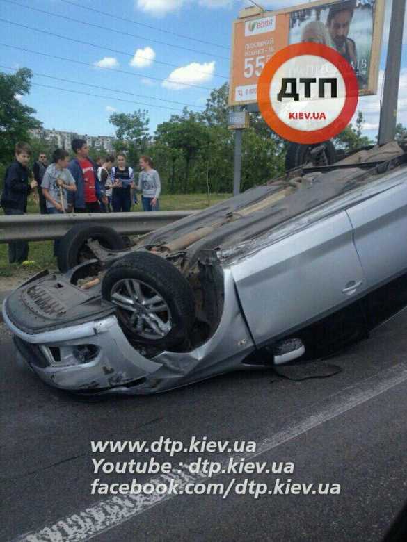 ДТП с опрокидыванием произошло в Киеве на Московском проспекте сегодня, 21.05.2016. В результате образовалась огромная пробка.