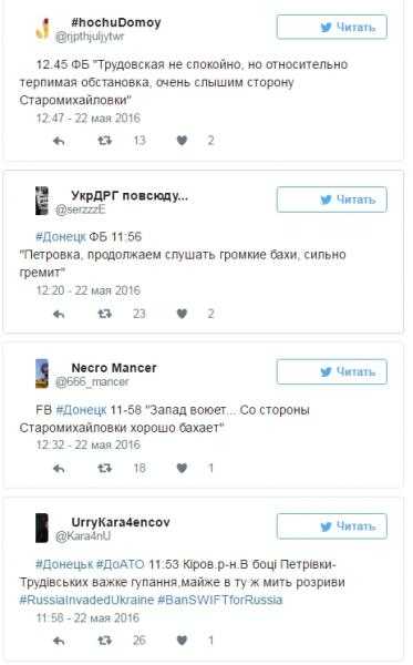 В то же время группировка «ДНР» заявляет, что сегодня, 22 мая, с 7 часов утра до 10:20 под обстрел попали село Спартак, территория аэропорта и поселок Старомихайловка. «ДНР» обвиняет украинских военных в обстреле.