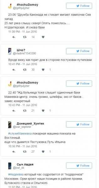 По мнению пользователей, обстрелы идут по всей линии фронта вокруг Донецка.