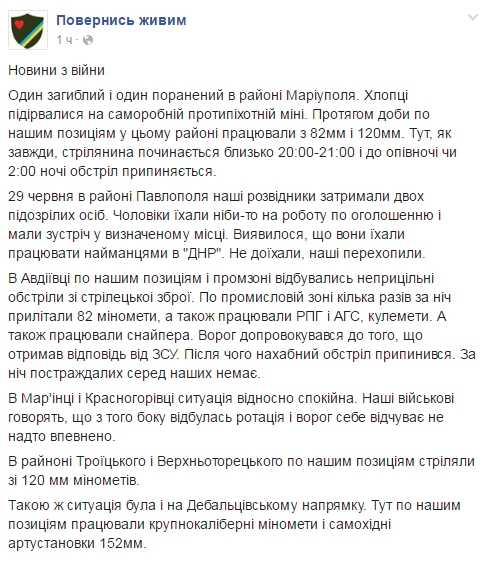 Эту новость Донбасса передает Час Пик со ссылкой на "Повернись живим" в Фейсбуке.