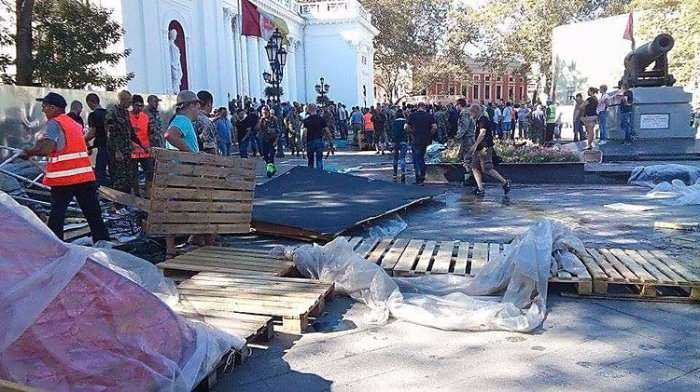 Сегодня, 1 сентября, на Думской площади в Одессе активисты силой разгромили палатки участников так называемого "антитрухановского майдана".