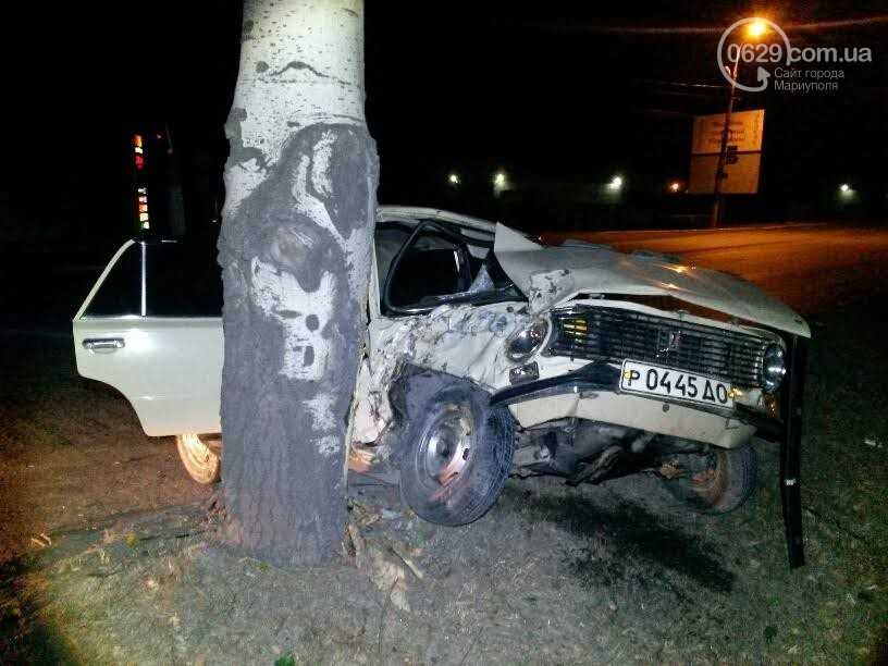 Автомобиль боком врезался в дерево и получил существенные повреждения.